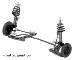 - The suspension vibration modes are well verified by correlating to those of modal test data of real suspension.